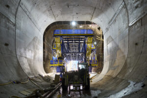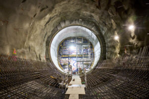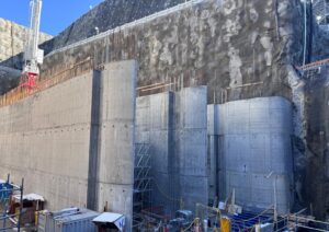 - Placement of reinforcement steel, and high volume concrete pours for the 50-metre long, 10-metre diameter transition tunnel connecting the diffuser with the tunnel to the gate shaft